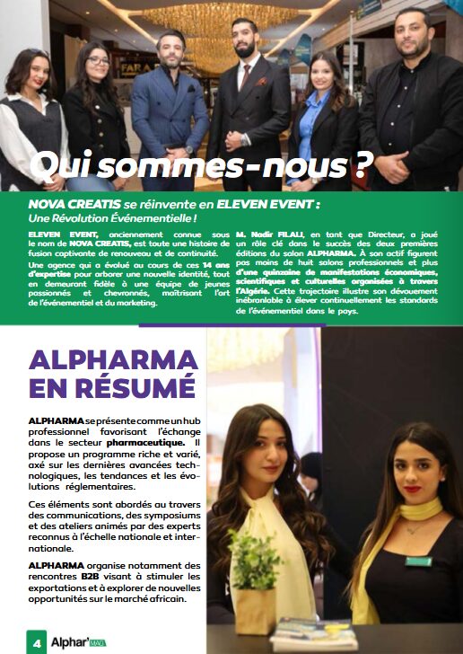 Sous le haut patronage de monsieur le Wali de la Wilaya de Annaba, ELEVEN Events en partenariat avec le Syndicat National Algérien des Pharmaciens d’Officine SNAPO, Fédération algérienne de pharmacie FAP et l’association nationale des pharmaciens algériens ANPHA, et le club scientifique de la pharmacie GALIPHARM annonce avec enthousiasme le lancement de la quatrième édition du salon international de la pharmacie « ALPHARMA ». Un événement destiné aux pharmaciens, réservant un lieu d’échange entre les Laboratoires, les distributeurs, les grossistes et les différents acteurs de l’industrie pharmaceutique en Algérie.